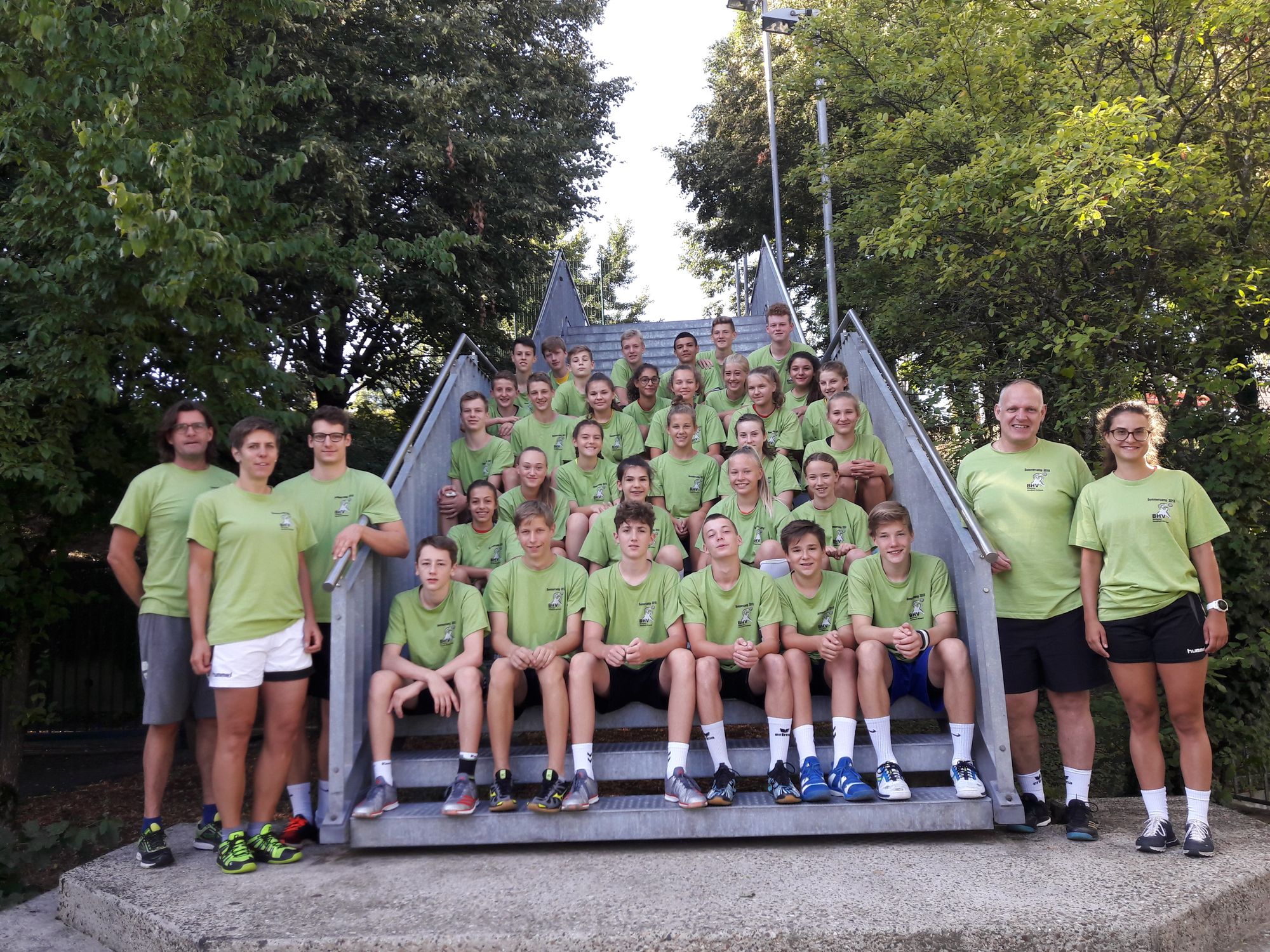 Am Montag, 06.08.2018 eilten 17 Jungs des Jahrgangs 2004 und 18 Mädchen des Jahrgangs 2005 in die Sportschule Schöneck. BHV-Trainer –Klaus Billmaier, Julian Zipf und Andreas Biedermann mit Gesine Horstschäfer bereiteten ein sehr abwechslungsreiches Programm vor. Mit einer handballspezifischen Trainingseinheit in der Halle startete man in das BHV-Sommercamp, welches mit verschiedenen Koordinations- und Kraftübungen im Judoraum kombiniert wurde. Nach einer Stärkung am Mittagstisch wurden weitere handballspezifische Trainingseinheiten durchgeführt.