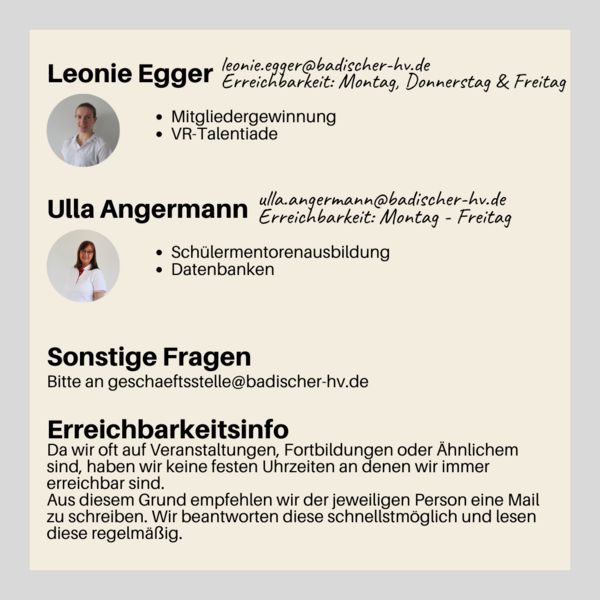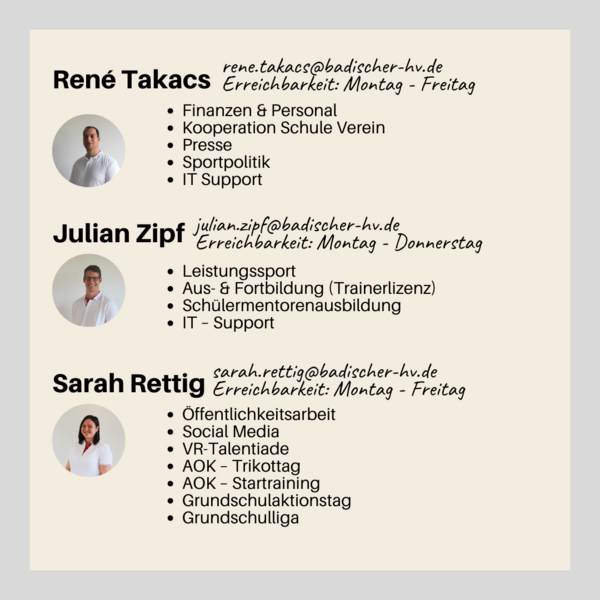 Da uns oft die Frage erreicht, wer für die jeweilige Frage zuständig ist, haben wir hier noch mal unsere Ansprechpartner*innen aufgelistet.