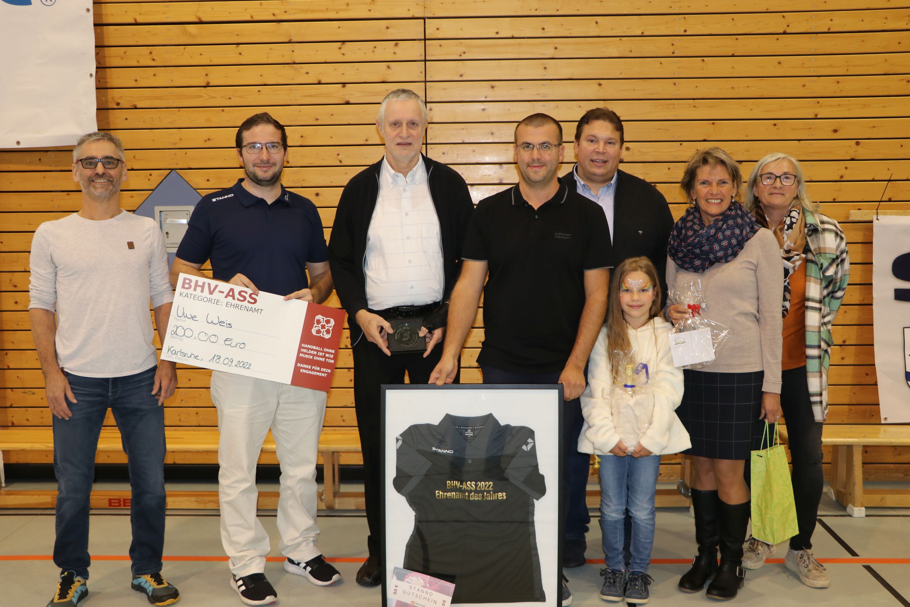 Der BHV ASS Award wurde in diesem Jahr ins Leben gerufen. Mit ihm sollen überaus engagierte Persönlichkeiten in den Kategorien Ehrenamt, Schiedsrichter und Spieler ausgezeichnet werden. Uwe Weis ist damit der erste Ehrenamtler, der mit dem Preis ausgezeichnet wurde. Und nur eine von zwei Personen im Bereich des Badischen Handballverbandes. Neben ihm wurde noch ein Trainer aus Birkenfeld geehrt, so Sebastian Krieger. Der Vizepräsident Jugend des Badischen Handballverbands nahm die Ehrung vor.
