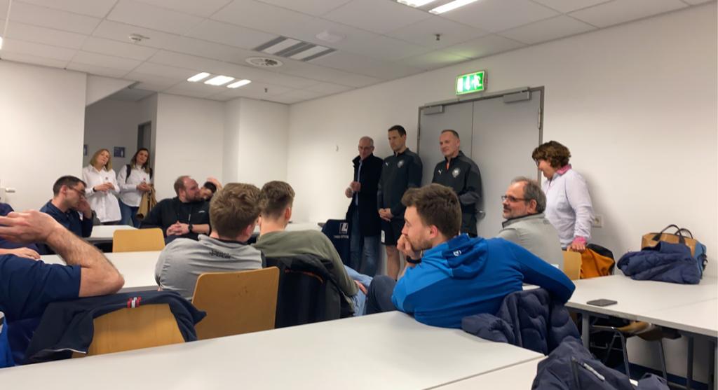 Im Anschluss an das Spiel trafen sich die gut 20 BHV-Schiedsrichter zu einem Gespräch mit den Kollegen aus dem DHB-Elitekader, um sich über das Spiel, aber auch über das Schiedsrichterwesen im Allgemeinen auszutauschen. Nicht nur die Neulinge unter den BHV-Schiedsrichtern konnten hierbei wertvolle Einblicke und Hinweise für die eigene SR-Karriere mitnehmen.