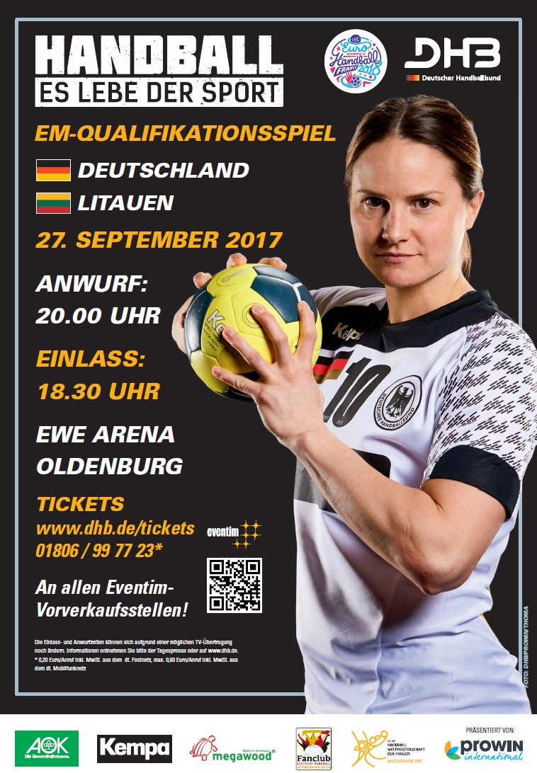Zunächst aber freuen sich die Fans in Oldenburg auf die deutsche Nationalmannschaft, zu deren aktuellen Kader auch einige Spielerinnen des heimischen VfL, wie Angie Geschke, zählen. Für die DHB-Auswahl ist die Partie in der großen EWE-Arena der Startschuss zur nächsten Phase der WM-Vorbereitung, aber auch der erste Schritt auf dem Weg zur Europameisterschaft 2018. Nur vier Tage später steht bereits die zweite Qualifikationspartie in der Türkei an. Dritter Gegner in Gruppe 6 ist der zweimalige Vize-Europameister Spanien, gegen den im Frühjahr binnen einer Woche zweimal gespielt wird. Die Rückspiele gegen Litauen und die Türkei finden im kommenden Juni statt. Für die EM, die vom 30. November bis zum 16. Dezember 2018 in Frankreich stattfindet, qualifizieren sich die ersten beiden Teams jeder der sieben Gruppen sowie der beste Gruppendritte.
