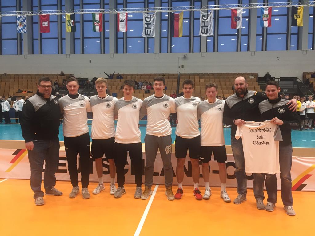 Mit zwei nach leistungsbezogenen Kriterien aufgestellten Teams nahm Handball Baden-Württemberg beim erstmalig durchgeführten Deutschland Cup in Berlin teil. Die Gastgeber waren es am Ende auch, die das Finale gegen Sachsen-Anhalt für sich entscheiden konnten. Baden-Württemberg I erwischte einen guten Start in ihrer als schwer eingestuften Vorrundengruppe. Das Team fand im ersten Spiel gegen Westfalen schnell Lösungen gegen die Abwehrvariationen des Gegners und sicherte sich mit 23:18 die ersten beiden Punkte. Leider fehlte es dem Team aber im gesamten Turnierverlauf an Konstanz, weshalb man sich im zweiten Spiel überraschend dem Handballverband Bayern mit 16:20 geschlagen geben musste. So ergab sich bereits in der Gruppenphase ein echtes Endspiel gegen Niedersachsen, gegen die Baden-Württemberg im November beim Vorbereitungsturnier in Hameln verloren hatte. Die Vorzeichen für dieses Spiel waren klar zu benennen: Ein Sieg würde den Gruppensieg, eine Niederlage den letzten Gruppenplatz bedeuten. Schlussendlich zeigte das Team eine hervorragende Leistung und gewann schließlich mit 26:20. Im Viertelfinale am Folgetag wartete mit Schleswig-Holstein eine Mannschaft, die ein Match auf Augenhöhe versprach. Genau das entwickelte sich schließlich auch. Zwar führte man über weite Strecken des Spiels, erlaubte dem Gegner aber zum Ende der Partie nochmals aufzuschließen. Schließlich war es dann die Auswahl aus Schleswig-Holstein, die das Momentum auf ihrer Seite und am Ende mit einem Tor Differenz (23:24) die Nase vorne hatten. Eine wirklich ärgerliche und vermeidbare Niederlage, auch wenn man sich sportlich gut präsentierte. Knappe drei Stunden später wartete das Zwischenrundenspiel gegen Mittelrhein auf die Jungs aus Baden-Württemberg. Schnell wurde klar, dass die Szenen aus der Endphase des Viertelfinales noch nicht verarbeitet waren. So lief man über die gesamte Dauer des Spieles einem Rückstand hinterher, konnte sich zwar nochmals in Schlagdistanz herankämpfen, verlor schlussendlich aber gerecht mit 26:28. Ein gebrauchter Tag für Handball Baden-Württemberg. Trotzdem muss man den Spielern ein Kompliment aussprechen, denn im Spiel um Platz 7 gegen Brandenburg, zeigten sie am folgenden Vormittag erneut eine spielerisch wie kämpferisch hervorragende Leistung und siegten schließlich mit 22:19. Für Baden-Württemberg II begann das Turnier gleich mit einer enorm schweren Aufgabe. Mit Sachsen-Anhalt, dem späteren Finalisten, wartete ein Topfavorit auf die Jungs aus dem Süden. Sie kämpften tapfer, allerdings zeigt das Ergebnis (15:24), dass hier nichts zu holen war. Direkt im Anschluss gegen den Handballverband Brandenburg zu spielen und aufgrund der Niederlage unter Zugzwang zu stehen, forderte den Spielern physisch und psychisch alles ab. Am Ende hieß es 18:18, was ein Weiterkommen immer noch zuließ. Dazu benötigte man allerdings einen hohen Sieg gegen Mecklenburg-Vorpommern. Mit dieser Prämisse im Hinterkopf startete das Team von Baden-Württemberg II mit vollem Einsatz in die Partie und konnte schließlich 25:17 gewinnen. Mit Schützenhilfe von Sachsen-Anhalt schien der Einzug ins Viertelfinale geschafft zu sein. Jedoch lieferte Sachsen-Anhalt nur insofern Hilfestellung, dass ein Ergebnis entstand, welches Baden-Württemberg II und Brandenburg in allen Vergleichsaspekten exakt identisch einstufte. So mussten die Jungs zwei Stunden nach ihrem Spiel erneut zum 7m-Werfen aufs Feld. Dieses verlor man schließlich durch einen einzigen Pfostentreffer. Selbst am nächsten Vormittag, im Spiel der Zwischenrunde gegen den Handballverband Sachsen, bemerkte man die unverarbeitete Enttäuschung der Jungs. Es funktionierte nicht viel und man musste sich 18:33 geschlagen geben. Doch auch Team II zeigte am Folgetag im Spiel um Platz 11 Charakter und schlug die Auswahl aus Rheinland-Pfalz mit 25:21. Für große Freude sorgte die Nominierung von Fynn-Luca Nicolaus ins Allstar Team des Deutschland Cups. Fynn habe hervorragende Leistungen im Rückraum und am Kreis gezeigt, so DHB Talentcoach Carsten Klavehn. Numerisch sind die Plätze 7 und 11 nicht das, was sich die Verantwortlichen in Baden-Württemberg erhofft hatten. Doch muss man den Jungs attestieren, über weite Strecken guten Handball gespielt zu haben. Für Team I war der Einzug ins Halbfinale und damit unter die Top 4 zum Greifen nahe. Die Tatsache, mit den Verbänden, die fast ausschließlich Internatsmannschaften entsprechen, Schritt halten zu können, stimmt positiv für die Zukunft und spricht eindeutig dafür, die Kräfte in Baden-Württemberg in Bezug auf den Deutschland Cup zu bündeln. Man wird nun analysieren, wie sich Abläufe in der Vorbereitungsphase weiter optimieren lassen. Allen Beteiligten und Helfern sei ein herzliches Dankeschön ausgesprochen. Zuerst sind hier die 32 Spieler zu nennen, die hundertprozentigen Einsatz für Baden-Württemberg gezeigt haben. Dank gilt auch unserer Physiotherapeutin Aleksandra Forstbauer, den Trainern Jürgen Lebherz und Alexander Lipps, dem leitenden Landestrainer des weiblichen Bereichs Nico Kiener sowie Leistungssportkoordinator Dr. Pavol Streicher.