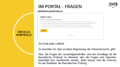 Das Portal ermöglicht den angehenden Neulingen eine flexiblere Ausbildung, da die Lerneinheiten in Module aufgeteilt sind und die Regeln im Selbststudium erarbeitet werden. Zwischen den Modulen findet stets eine Lernkontrolle mit allen Teilnehmern und einem Lehrwart aus dem Bezirk statt, welche dann zeiteffizient genutzt werden kann. Ein weiterer Vorteil ist, dass die Lernkontrollen auch virtuell stattfinden können, sollte es die Situation erfordern.