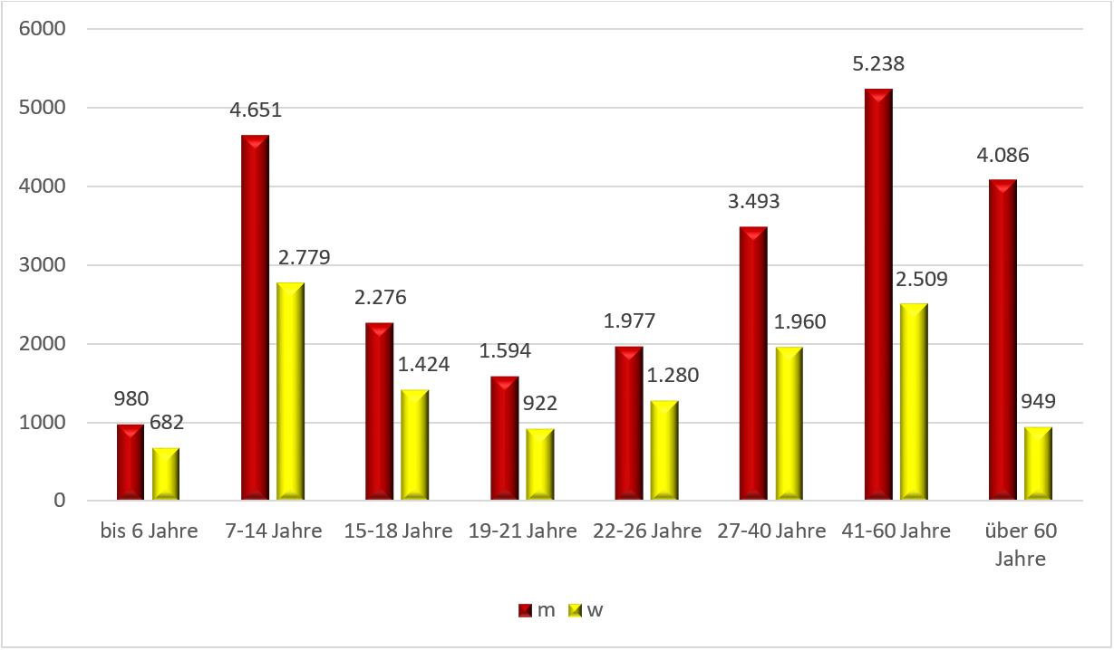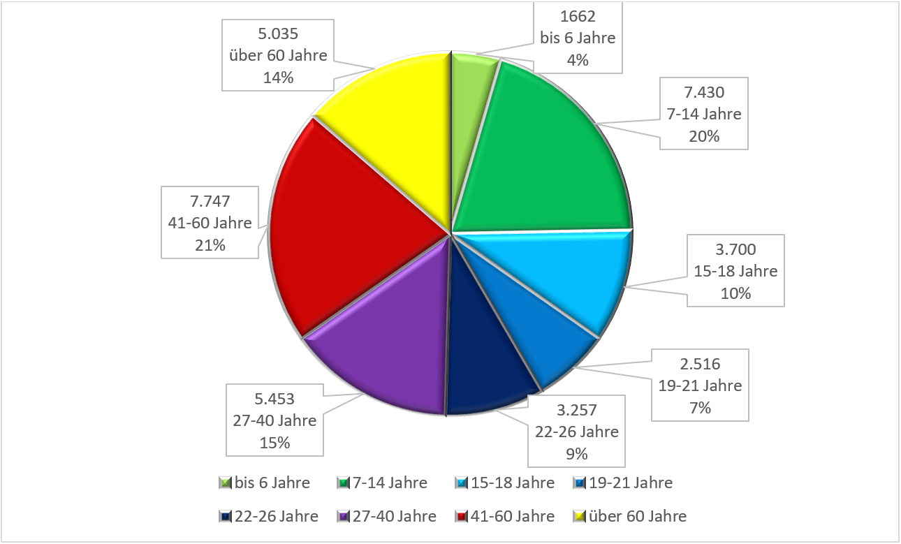 Die größte Zielgruppe des BHV bildet die Altersgruppe zwischen 41-60 Jahre, die von den Jugendlichen im Alter zwischen 7-14 Jahren knapp gefolgt wird.