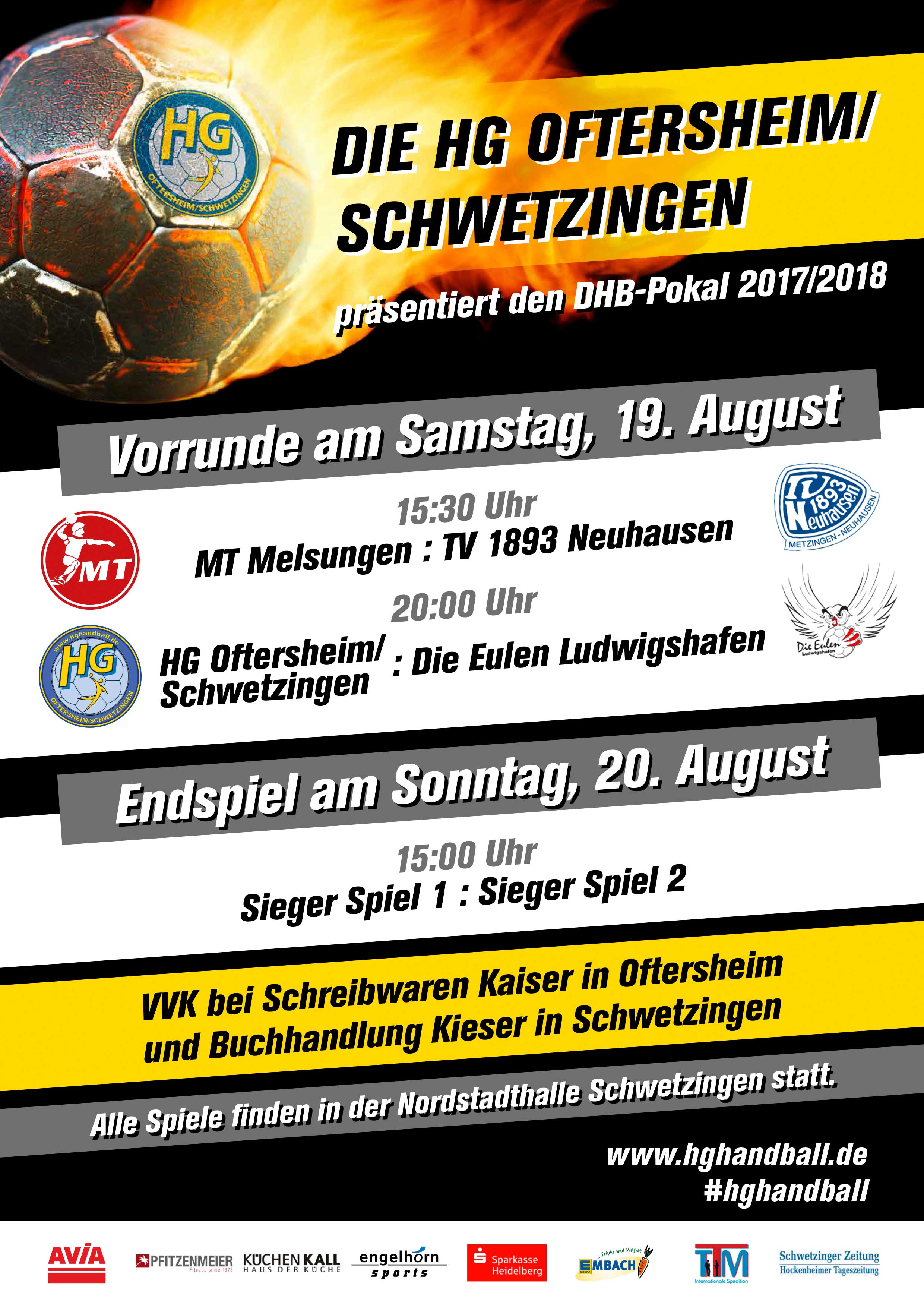 1. Halbfinale: Samstag 19.08, TV Neuhausen gegen MT Melsungen - Anspielzeit 15:30 Uhr - Einlass ab 14:00 Uhr 2. Halbfinale: Samstag 19.08, HG Oftersheim/Schwetzingen gegen TSG Lu-Friesenheim - Anspielzeit: 20:00 Uhr Endspiel: Sieger Spiel 1 gegen Sieger Spiel 2 - Anspielzeit: 15:00 Uhr - Einlass ab 13:30 Uhr
