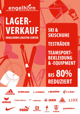 Am 15. und 16. April wird engelhorn einen Lagerverkauf im engelhorn Logistik-Center veranstalten. Dort erhalten Sie Ski und Skischuhe, Testräder sowie Teamsport-Bekleidung & -Equipment um bis zu 80 % reduziert...