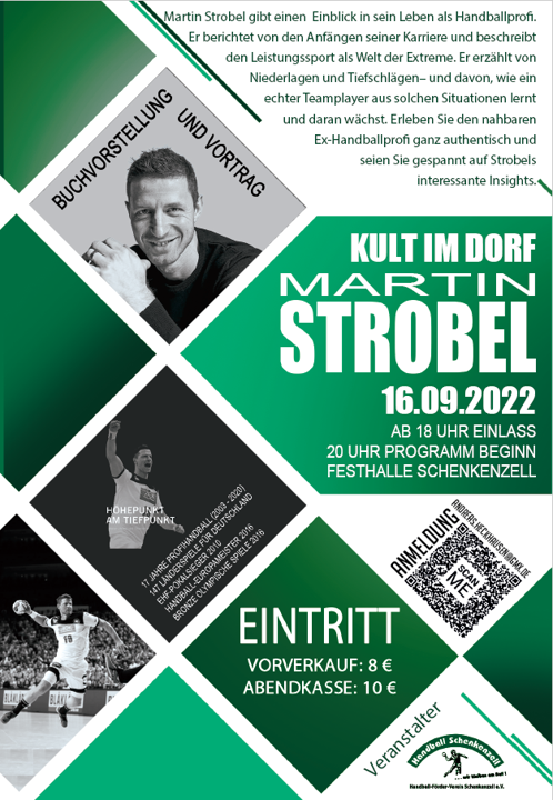Zum Start der Handball-Runde 2022/23 hat der Handball-Förder-Verein Schenkenzell unter dem Motto „Kult im Dorf Teil 10“ ein besonderes Highlight organisieren können: kein geringer als Martin Strobel wird am 16.09.2022 in Schenkenzell von seinem Leben als Handballprofi berichten.