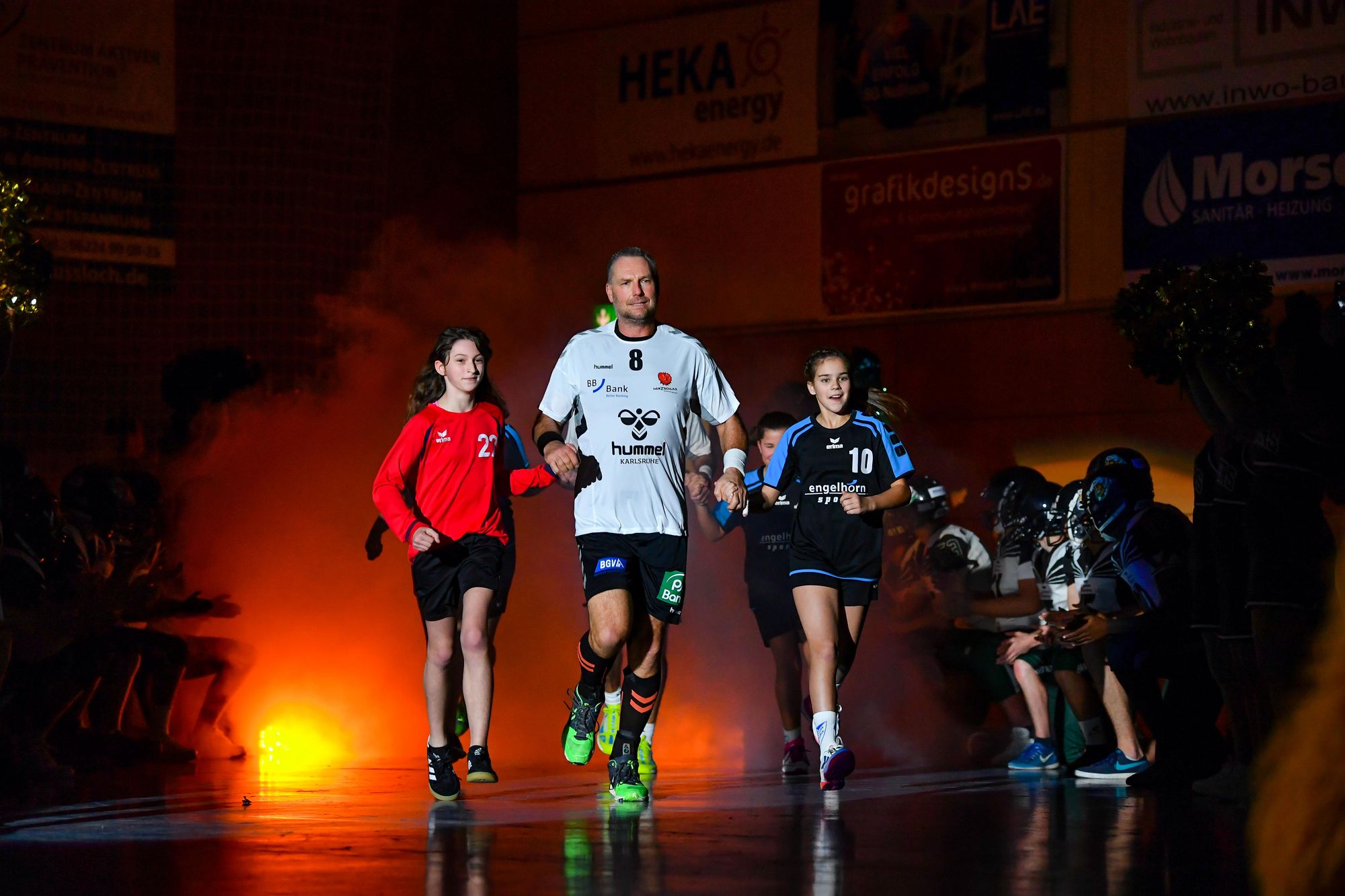 Stefan Kretzschmar gab alles, Christian „Blacky“ Schwarzer auch – und die lebende Trainer-Legende Heiner Brand war hochzufrieden mit der gesamten Handball-Allstars Truppe auf dem Feld. Mit 30:26 gewann die Weltmeister von 2007 doch relativ souverän gegen die 3. Liga der SG Nußloch und verschafften dem begeisterten Publikum in der ausverkauften Olympiahalle einen besonderen Handball-Abend der Extraklasse. Nach dem Spiel fand Allstars-Kapitän Blacky Schwarzer die ersten Worte zum Spielverlauf: „Ich finde es klasse, dass die Nußlocher auf ihren Trainer gehört haben. Marc Nagel hat die Jungs gut eingestellt. Unser Dank geht an alle, die heute in die Halle gekommen sind. Es hat richtig Spaß gemacht.“ Das Besondere an dieser Begegnung: Marc Nagel, ehemaliger DHB-Nationalspieler und Trainer der SG Nußloch spielte auf Seiten der Allstars gegen sein eigenes Team. „Ich bin nicht hingefallen und habe ein, zwei Bälle aufs Tor gebracht. Ein paar Tipps konnte ich meinen Kollegen geben, vor allem die Torhüter haben gezielt danach gefragt“, berichtet der 49-jährige Drittliga-Trainer und Lehrer am Otto-Hahn Gymnasium (Karlsruhe) nachdem die rund 1.000 Zuschauer nach Spielende auch die Ehrung der beiden MVPs (Most Valuable Player) verfolgen konnten.