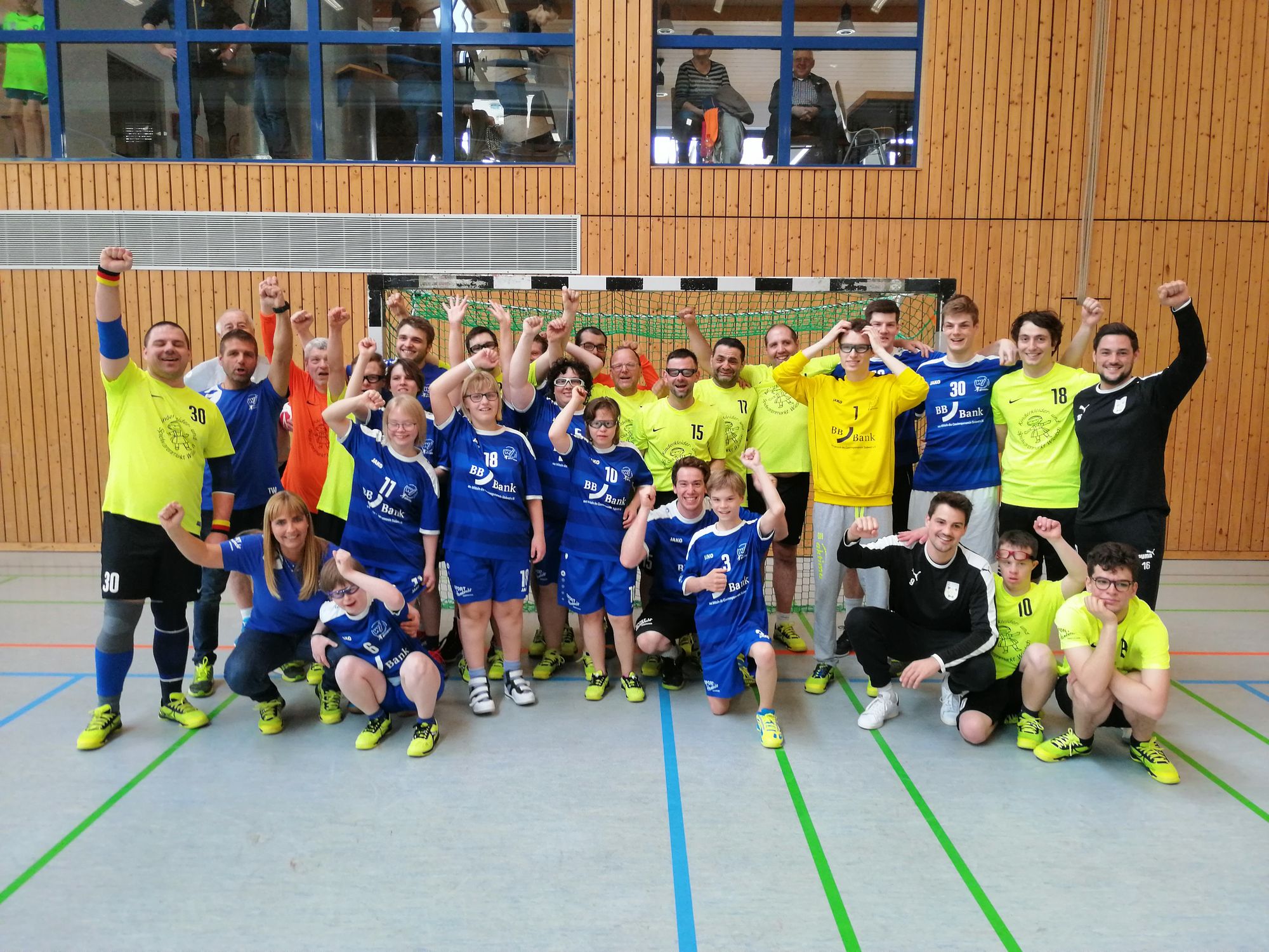 Im Finale standen sich damit die beiden Landesligazweiten gegenüber. Ehe es zum Finale kommen konnte, benötigte der zweite Halbfinalist natürlich eine Pause. In dieser begeisterte die Inklusionsmannschaft des Heidelberger Handballkreises, die Wieslocher Wiesel, mit ihrer zahlenmäßig starken Truppe die Zuschauer. Deren Mannschaften wurden zu Beginn von Spielern der Dossenheimer Herren unterstützt. Auch die Wiesel spielten zwei Halbzeiten; wir bedanken uns bei den Wieseln, deren Betreuern und Schiedsrichter Rüdiger Olbrich für das gute Einlagespiel.