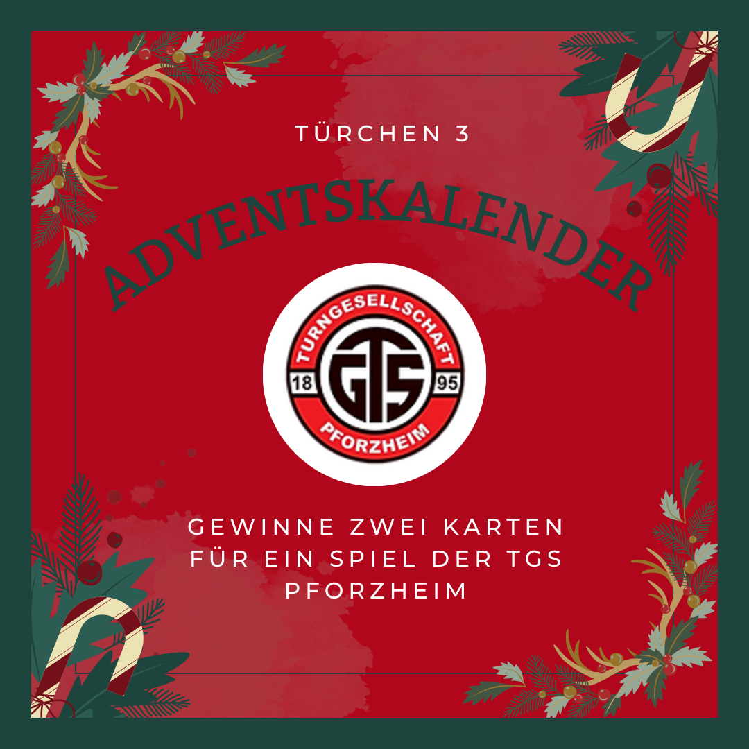Hinter Türchen 3 findet ihr 2 Karten für ein 3. Liga Spiel eurer Wahl der TGS Pforzheim (Herren).