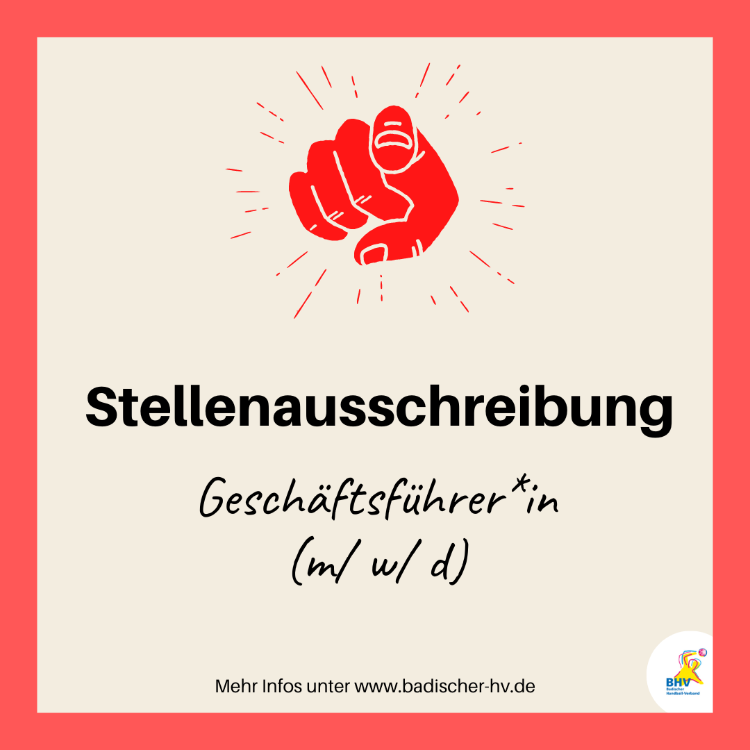 Der Badische Handball-Verband e.V. sucht – zum nächstmöglichen Zeitpunkt – in Vollzeit einen Geschäftsführer (m/ w/ d).
