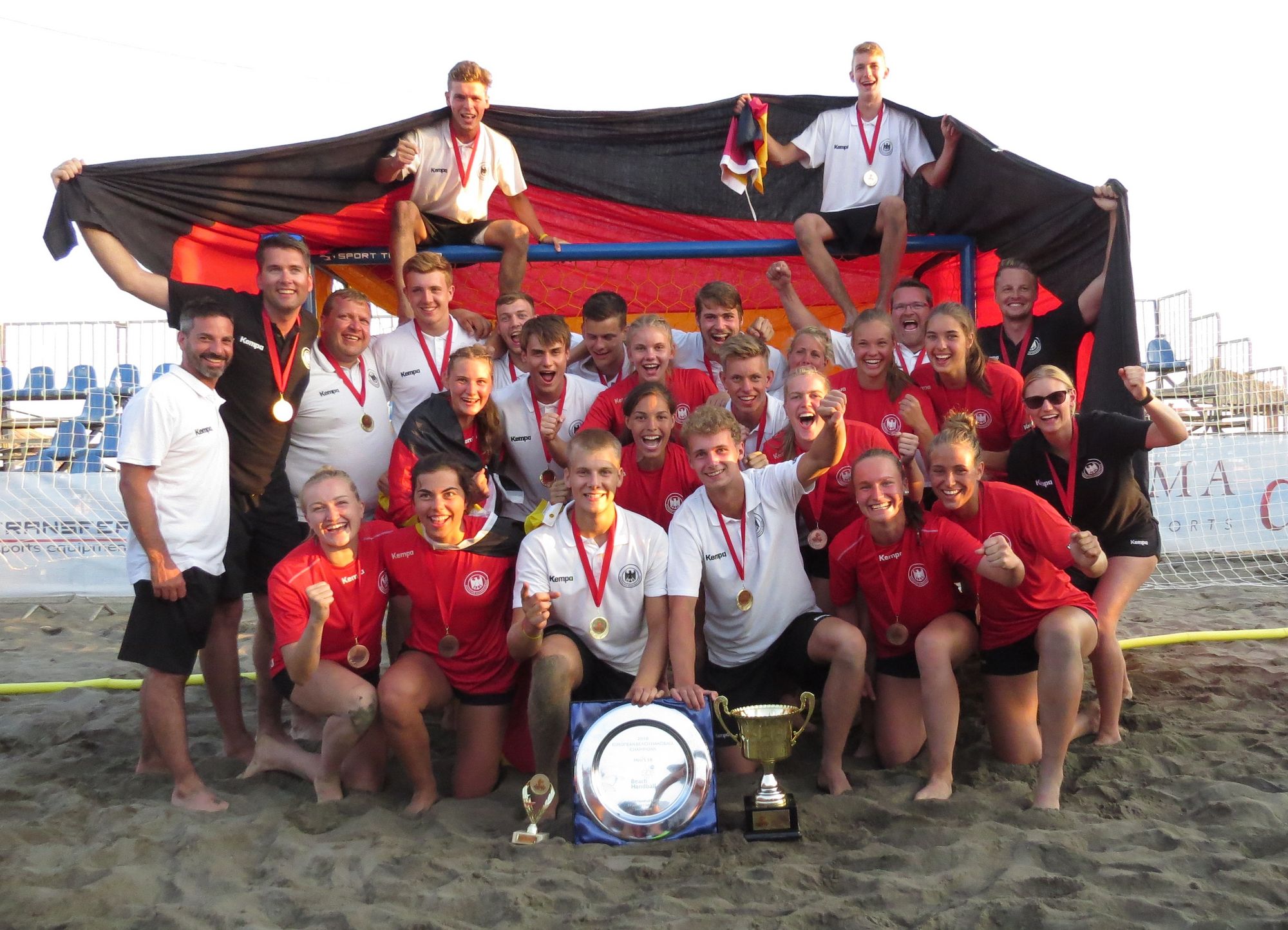 Für die beiden U18-Nationalmannschaften ging es bei der Beachhandball-Europameisterschaft vor allem darum, die beiden Bronzemedaillen aus dem Vorjahr zu bestätigen. Das eigentliche Ziel, sowohl mit der U18-weiblich und der U18-männlich die Halbfinals zu erreichen, wurde sogar übertroffen. Die Junioren holten nach einem 2:1-Sieg im Finale gegen Polen Gold und die Juniorinnen sicherten sich im Spiel um Platz drei gegen Portugal mit einem 2:0-Erfolg Bronze. Der Titel ging nach einem Finalsieg gegen die Niederlande an Ungarn.